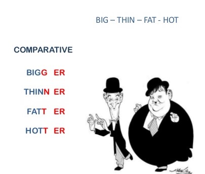 One way of describing a person or thing is by saying that they have more of a particular quality than someone or something else. To do this, we use comparative adjectives, which are formed either by adding ‘-er’ at the end of the adjective, or placing ‘more’ before the adjective, e.g: